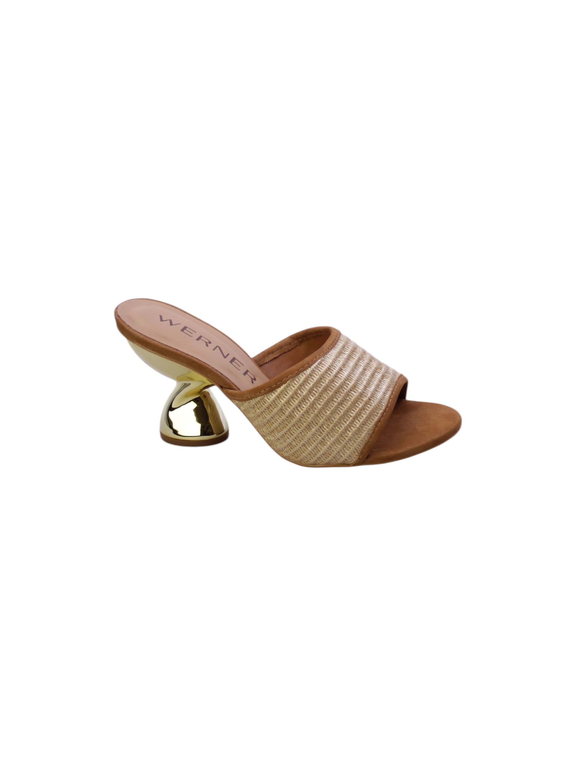 Sandalo Mules WERNER dal design raffinato ed elegante, ideale per chi cerca comfort e stile senza compromessi. Realizzato con una fascia rafia intrecciata in tonalità neutra con punta e bordo in camoscio cuoio che avvolge delicatamente il piede, vanta un tacco scultoreo dorato di 80mm, perfetto per slanciare la figura con grazia. La sua struttura aperta garantisce una piacevole ventilazione, mentre il sottopiede imbottito assicura un comfort duraturo per tutto il giorno. Un must-have per dare un tocco di classe a qualsiasi outfit. Indossalo e distinguiti con eleganza.