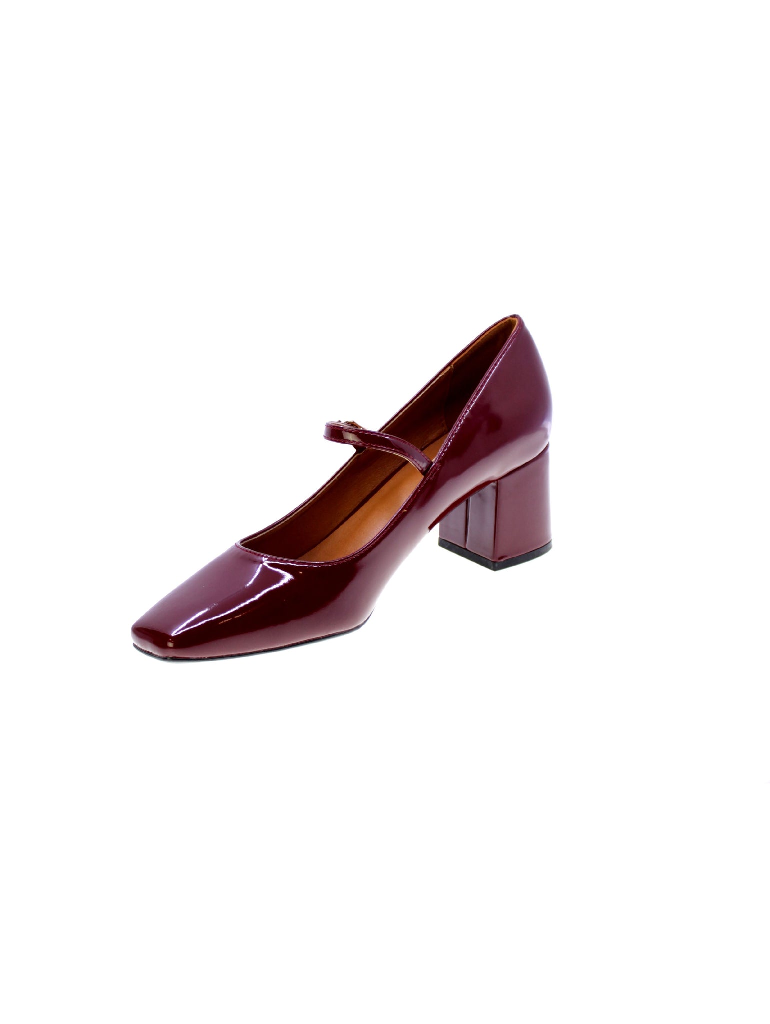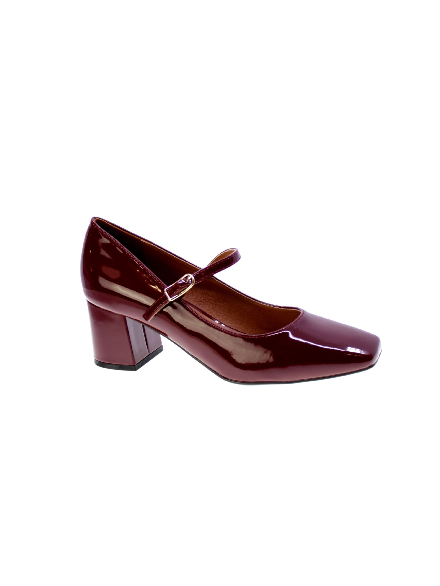 Decollete modello baby in vernice colore bordeaux fibbia regolabile, sottopiede morbido in pelle, rivestimento interno in pelle, tacco rivestito comodo 60mm, suola in sintetico gomma antiscivolo.