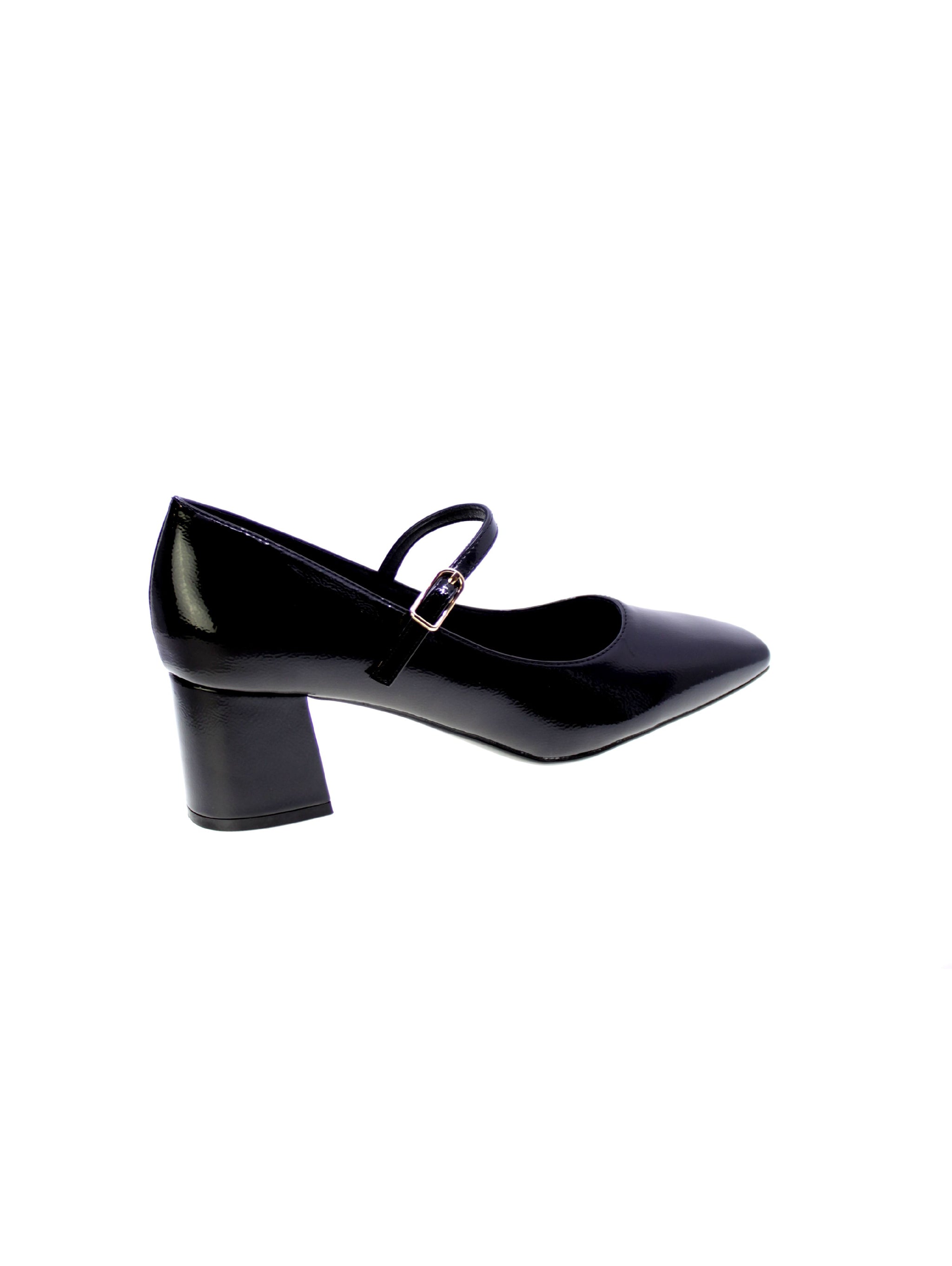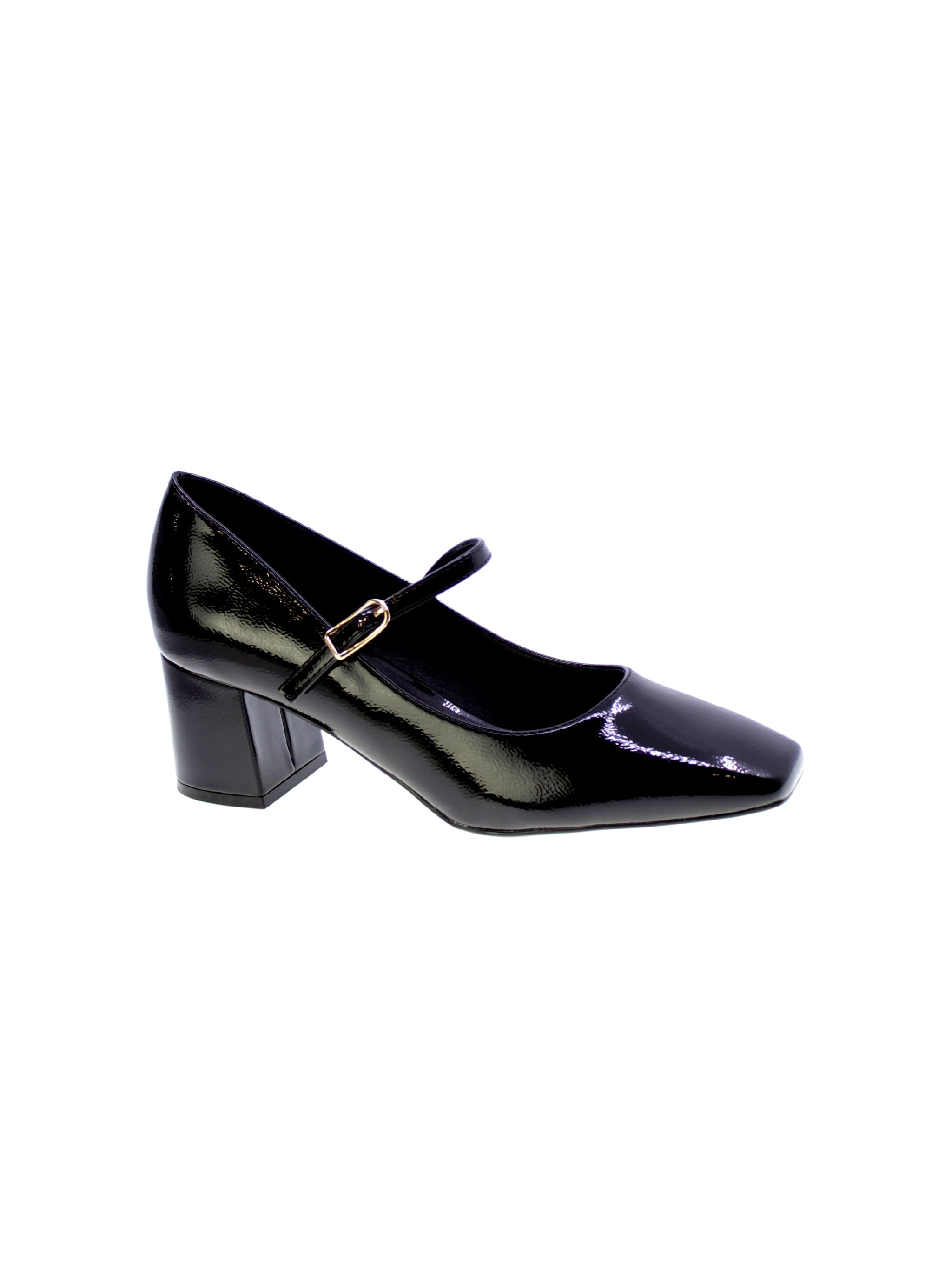 Decollete modello baby in naplak colore nero fibbia regolabile, sottopiede morbido in pelle, rivestimento interno in pelle, tacco rivestito comodo 60mm, suola in sintetico gomma antiscivolo.