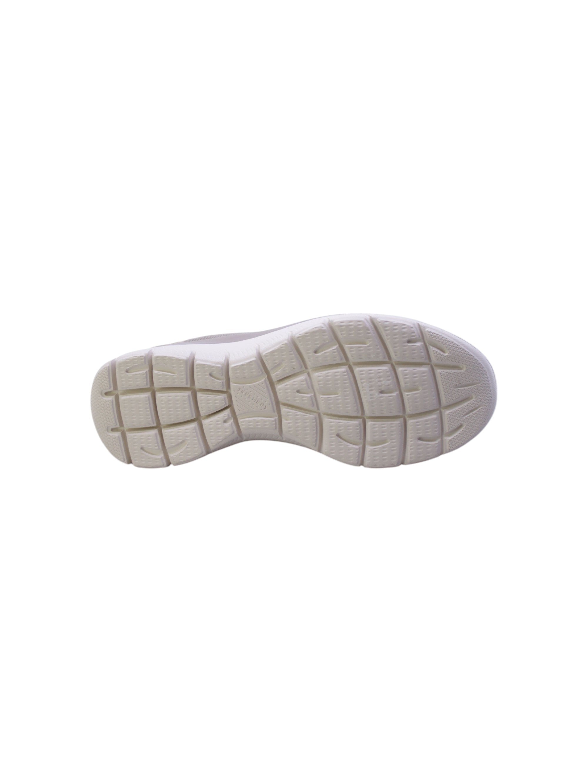 Sneakers Slip Ins in morbido tessuto colore taupe/dorato,4 asole con lacci elasticizzto non regolabile in tinta, rivestimento in tessuto traspirante, sottopiede comfort Memory Foam, fondo gomma leggera bicolore.