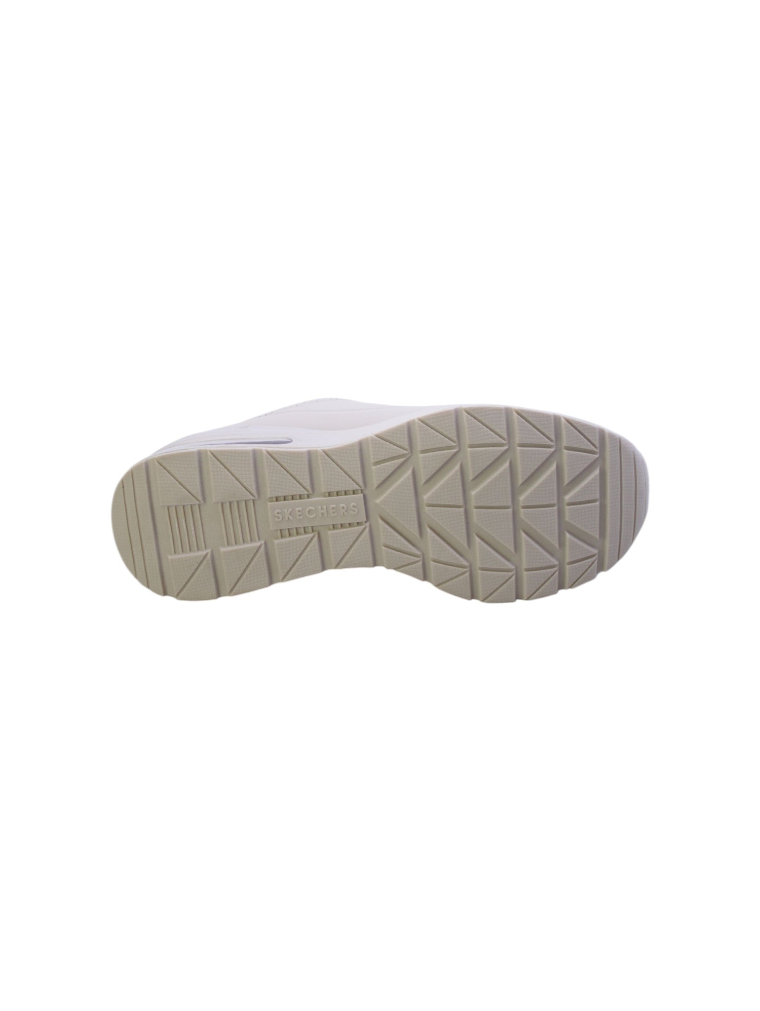 Sneakers Skechers in morbida tomaia sintetica testurizzata liscia e perforazione su tomaia e tallone colore bianco/off White,4+1 occhielli rinforzato con lacci in tinta, intersuola con cuscinetto d'aria visibile, rivestimento in tessuto, sottopiede comfort Memory Foam, fondo gomma leggera.