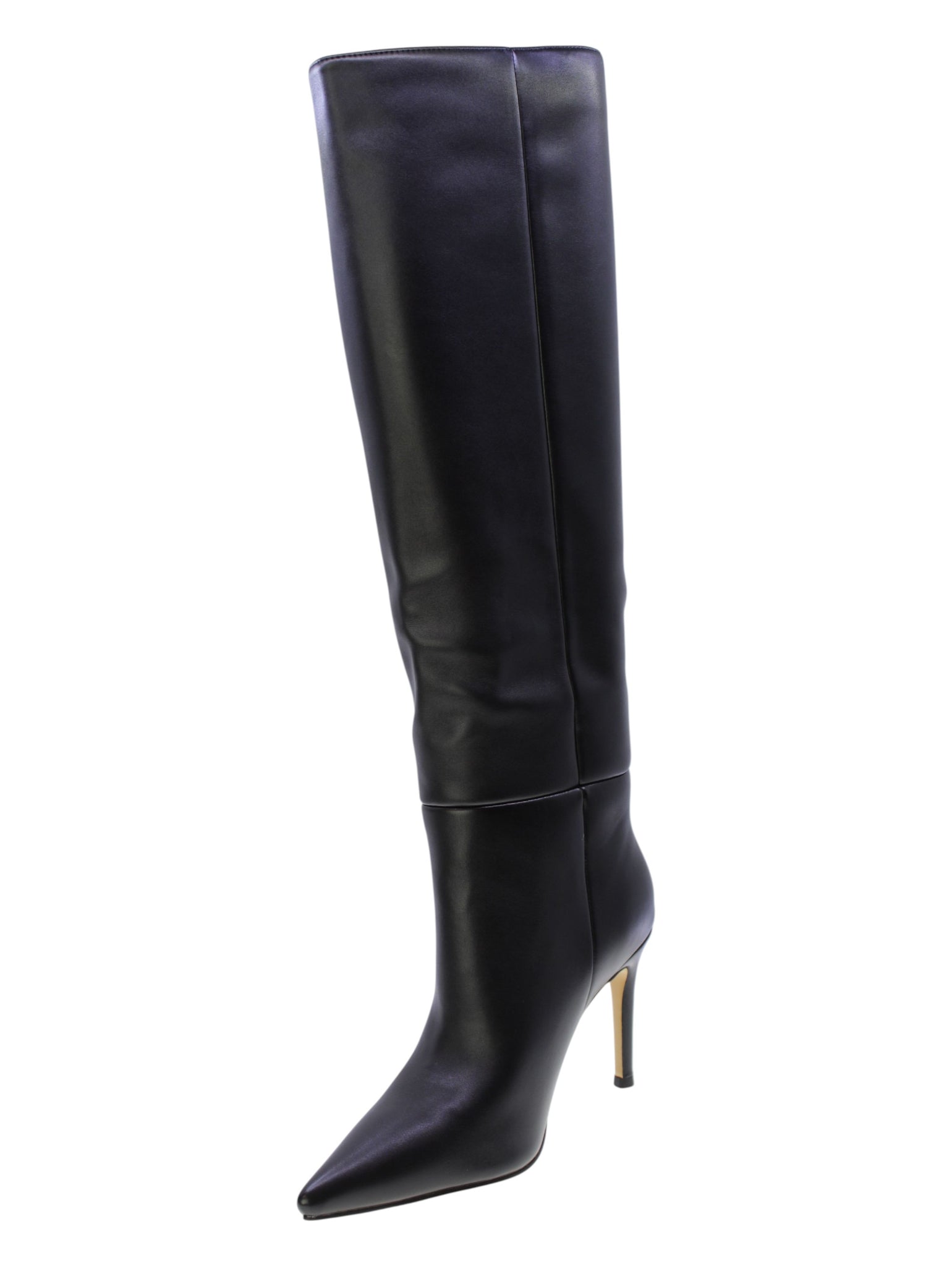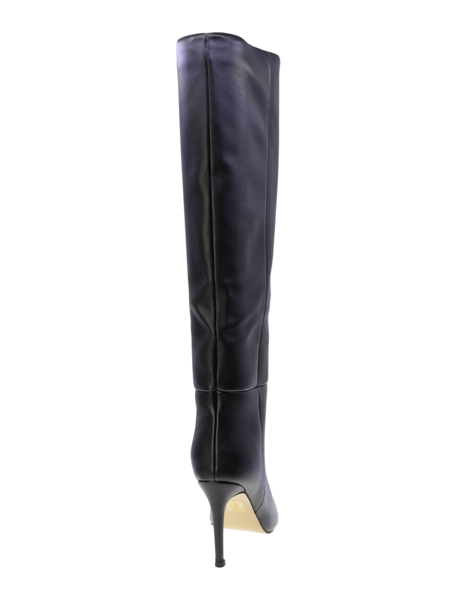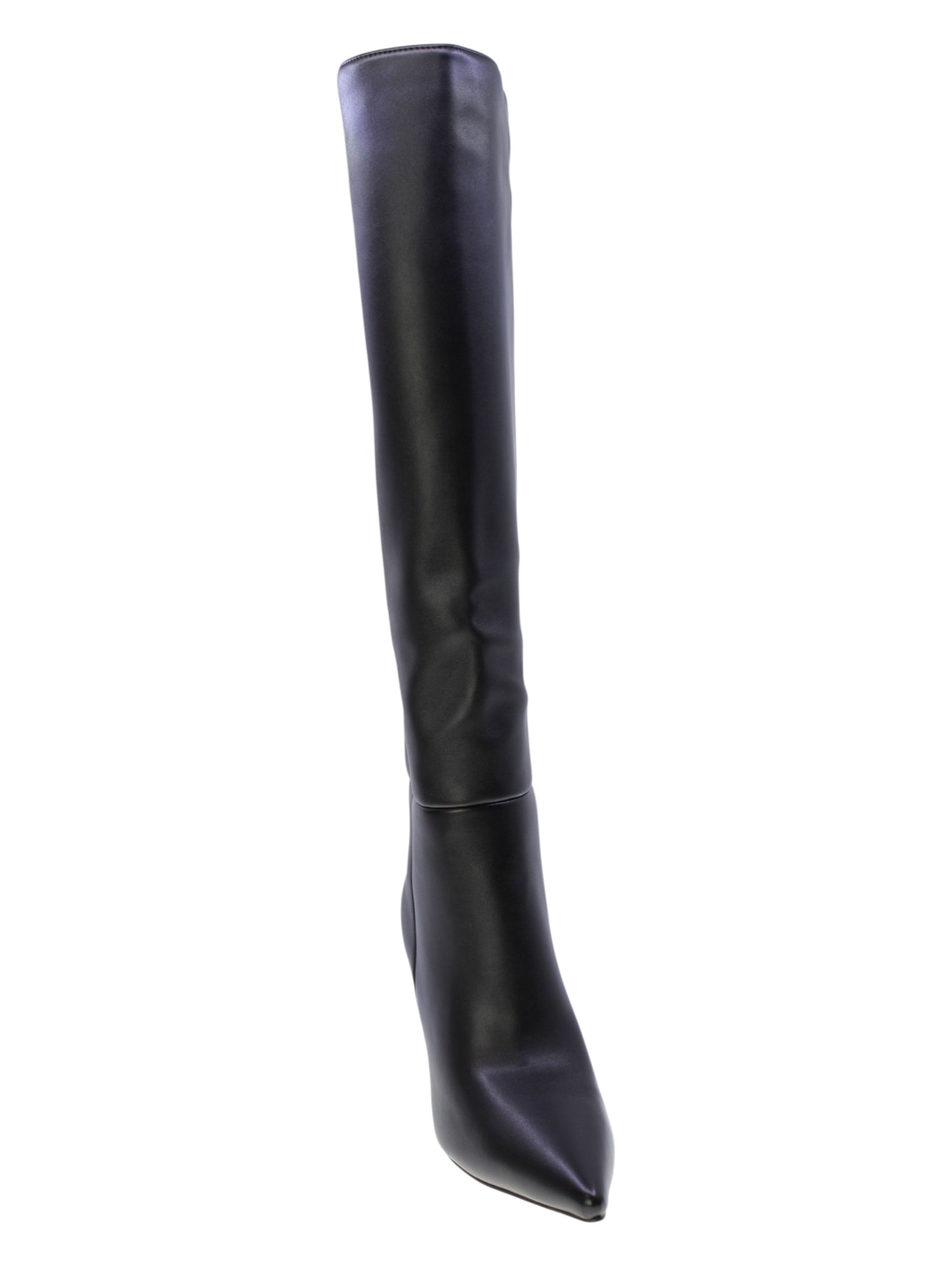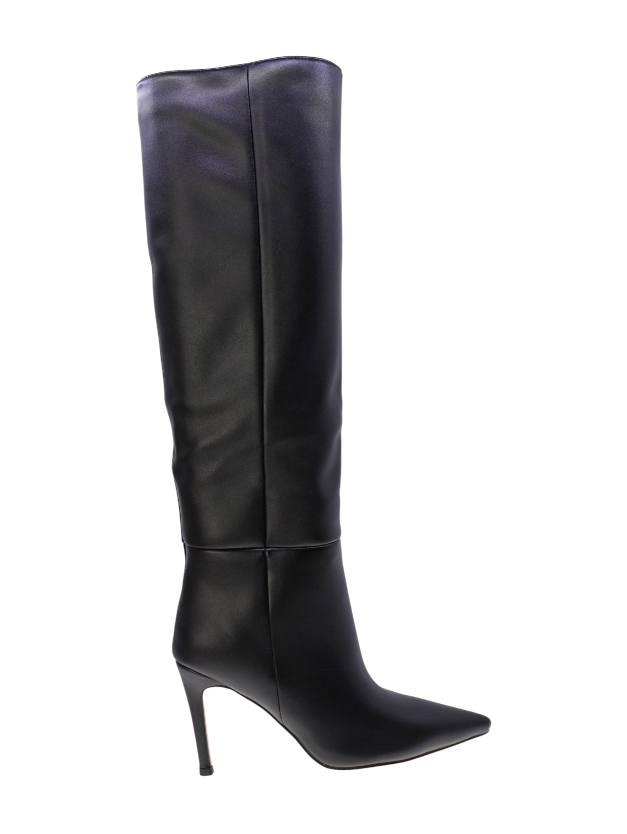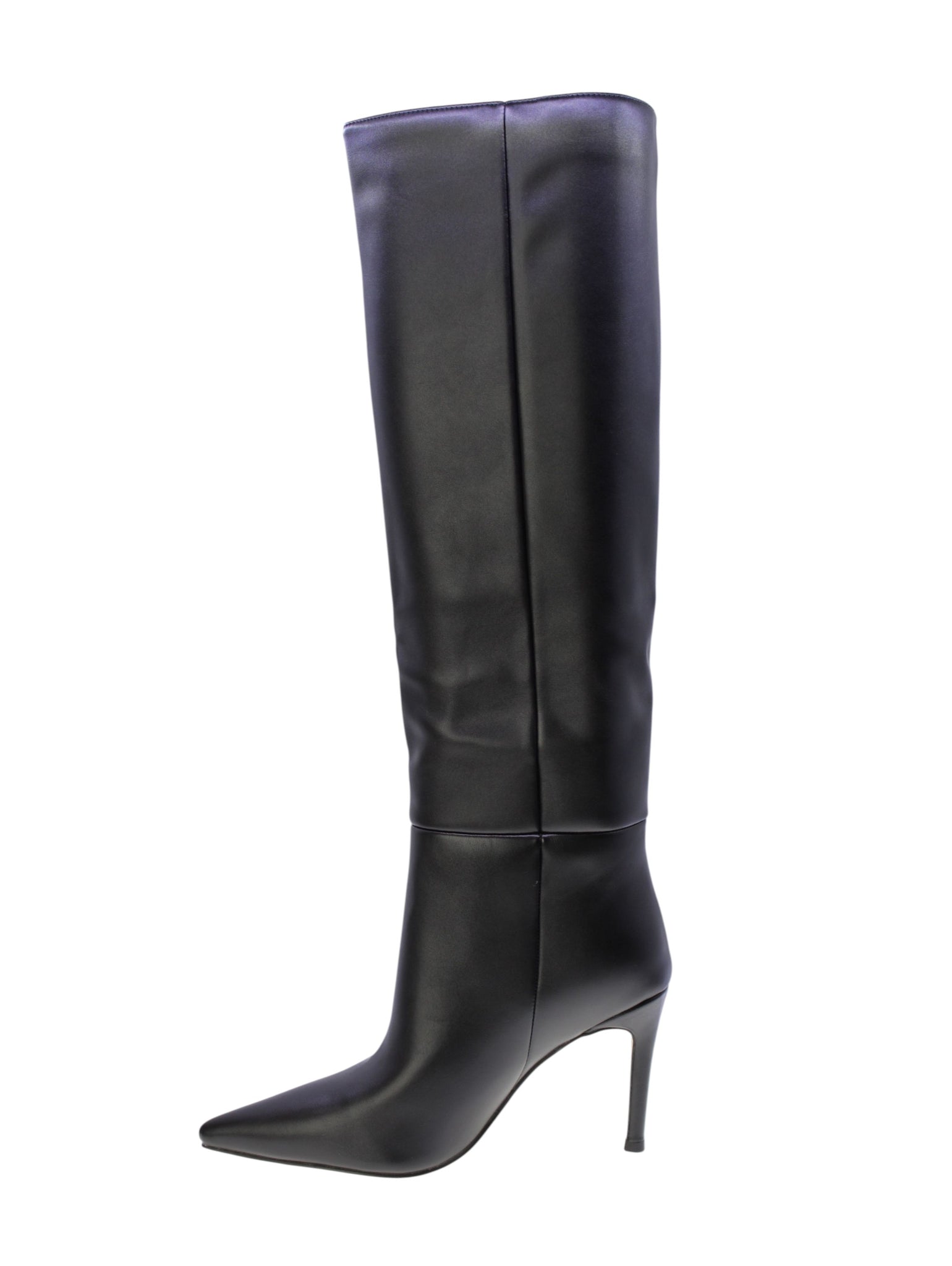 Stivale in morbido vegano colore nero, impunture a rilievo su