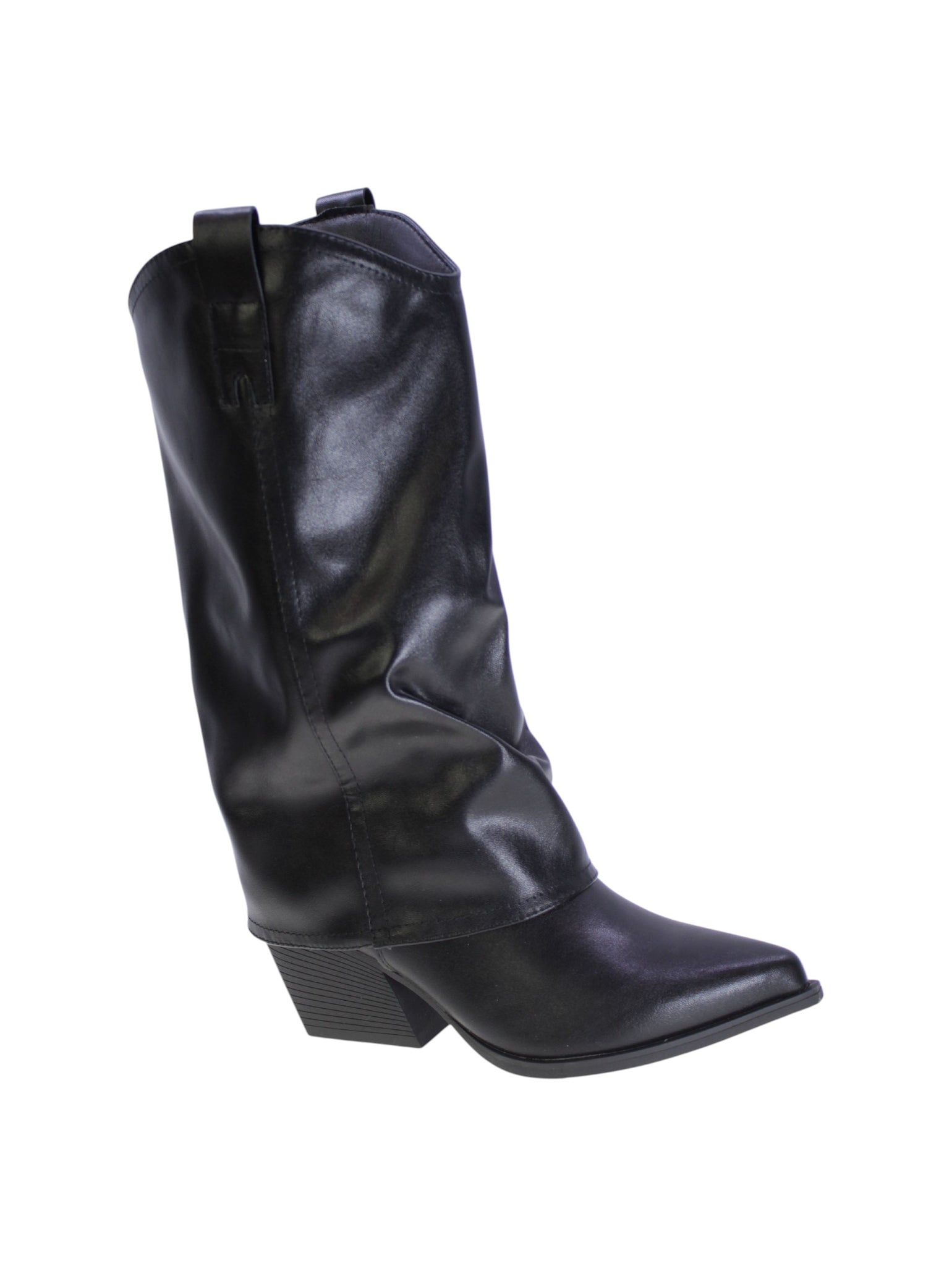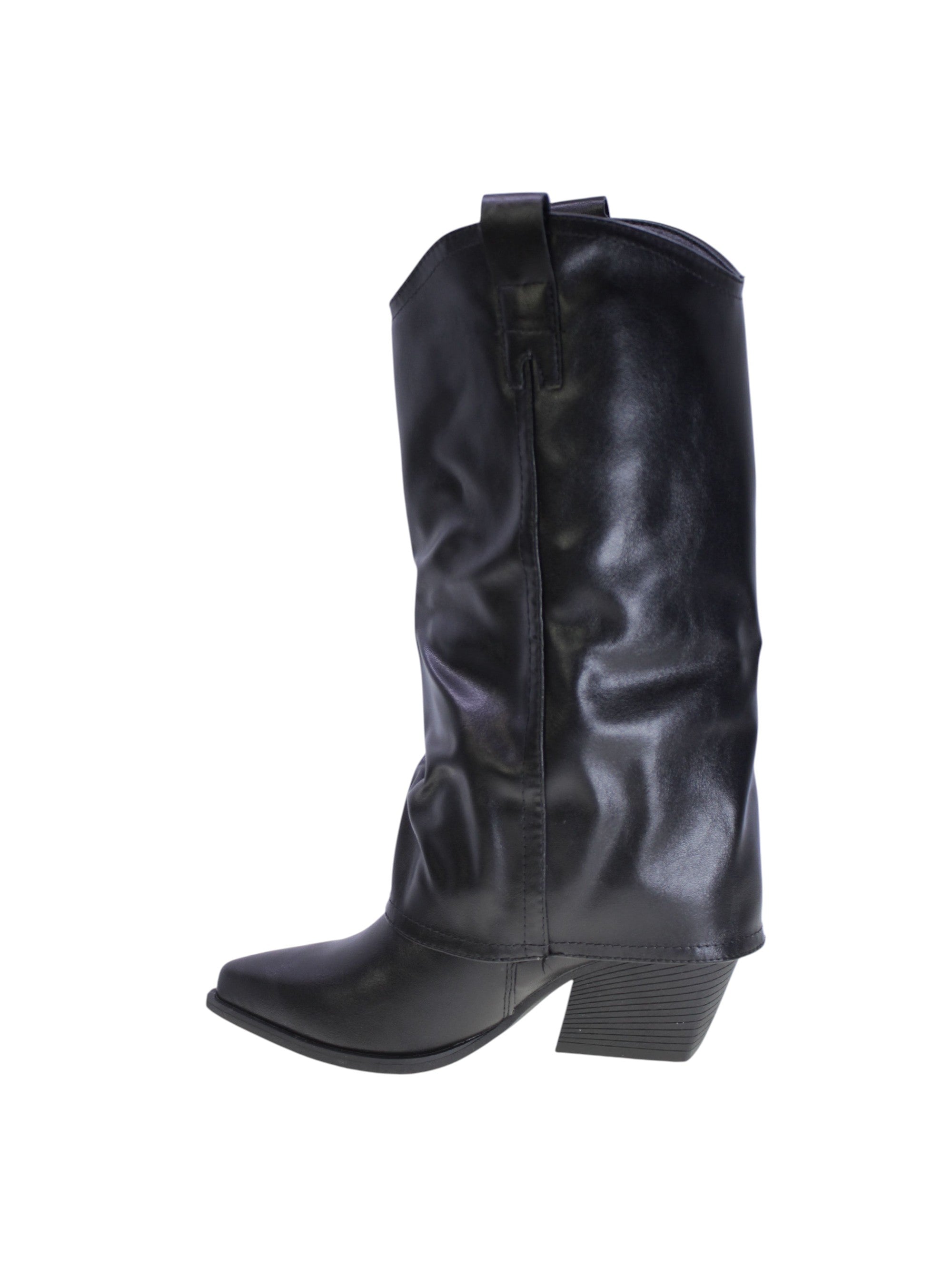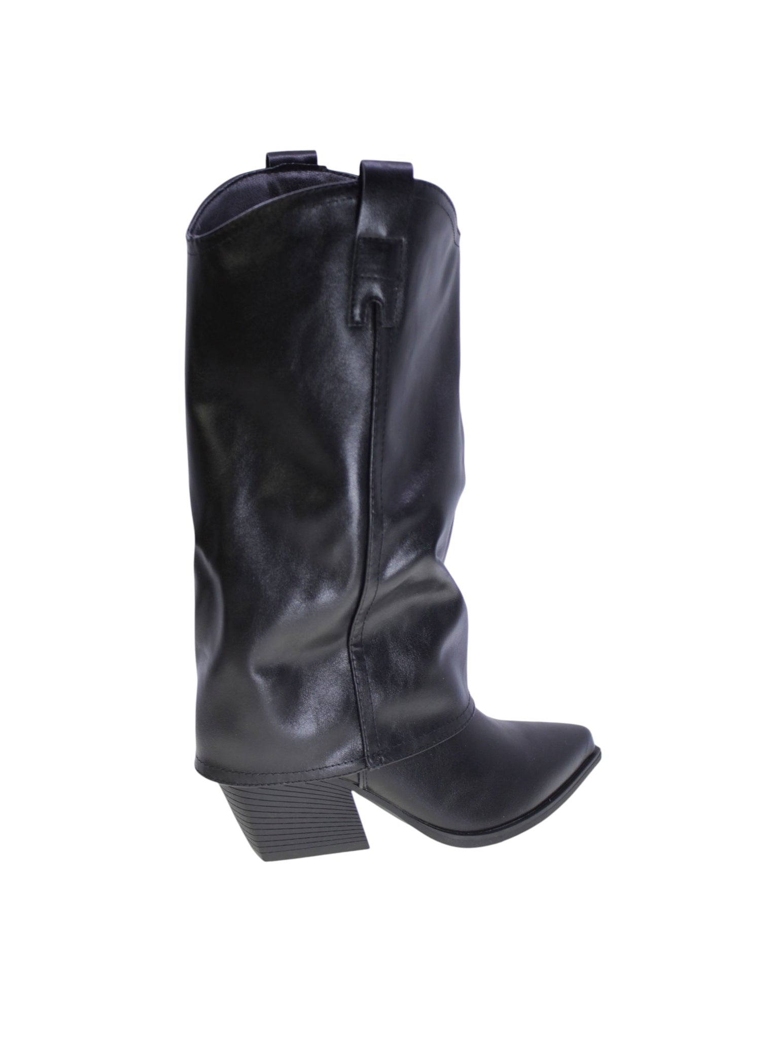 Stivaletto con risvolto su gambale in morbido vegano colore nero,