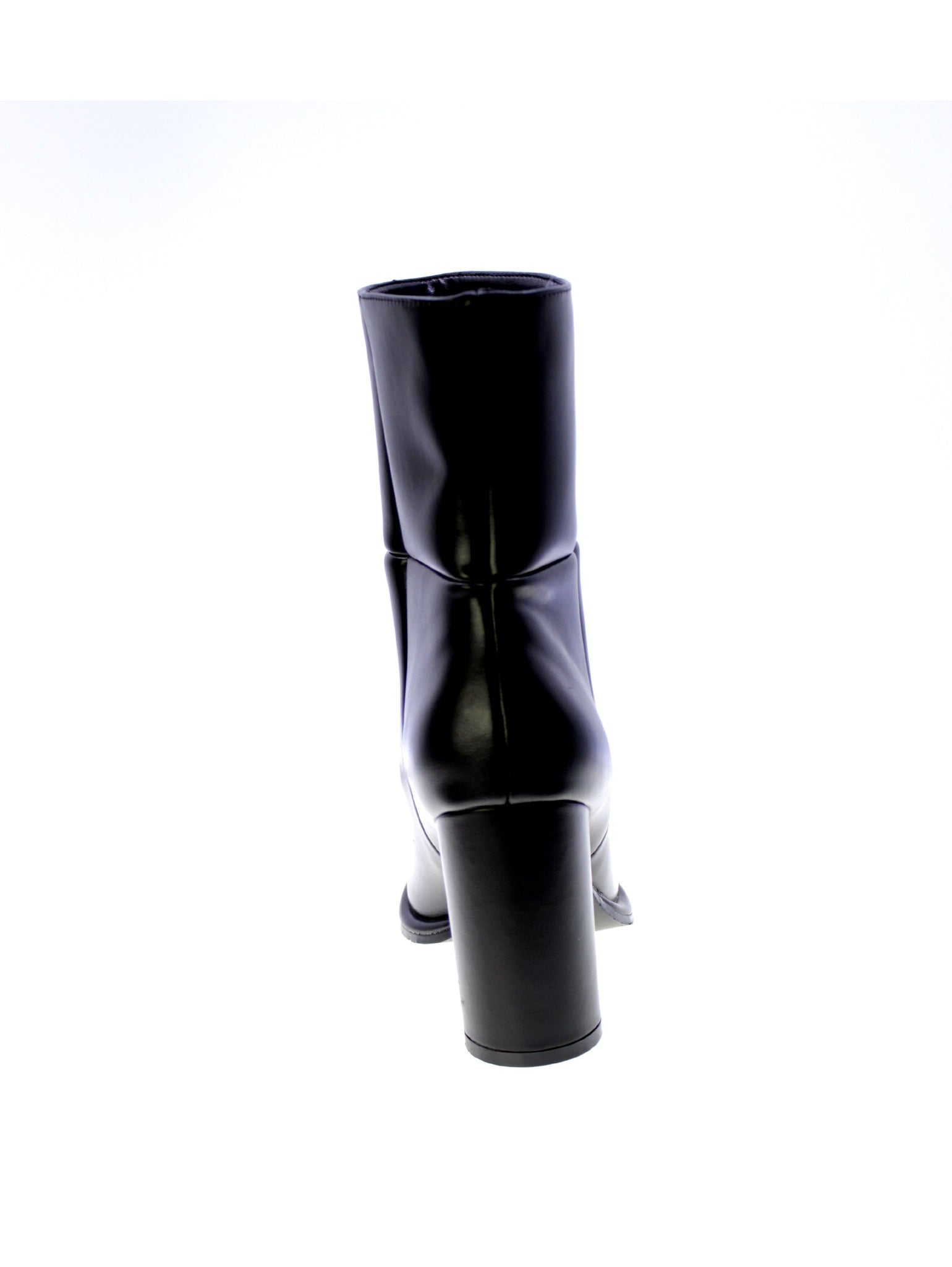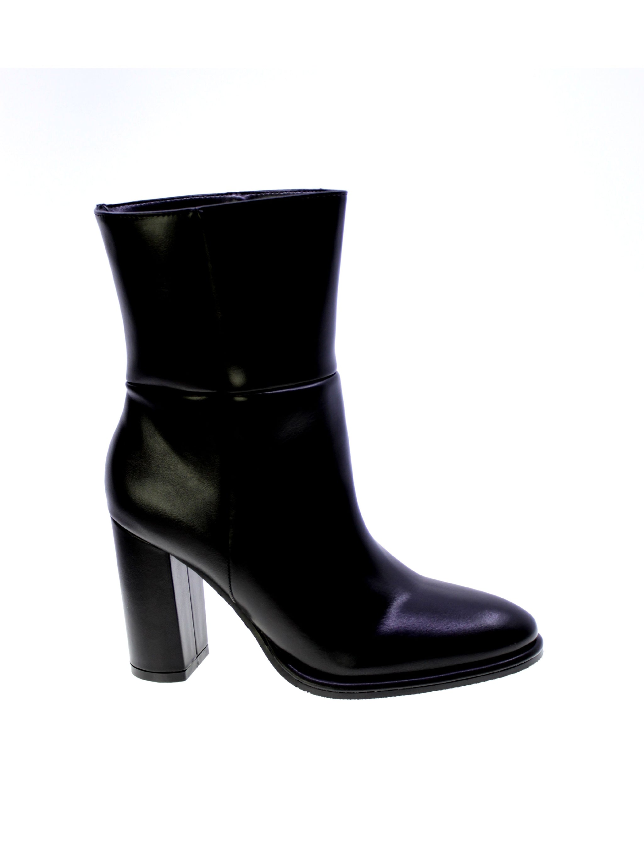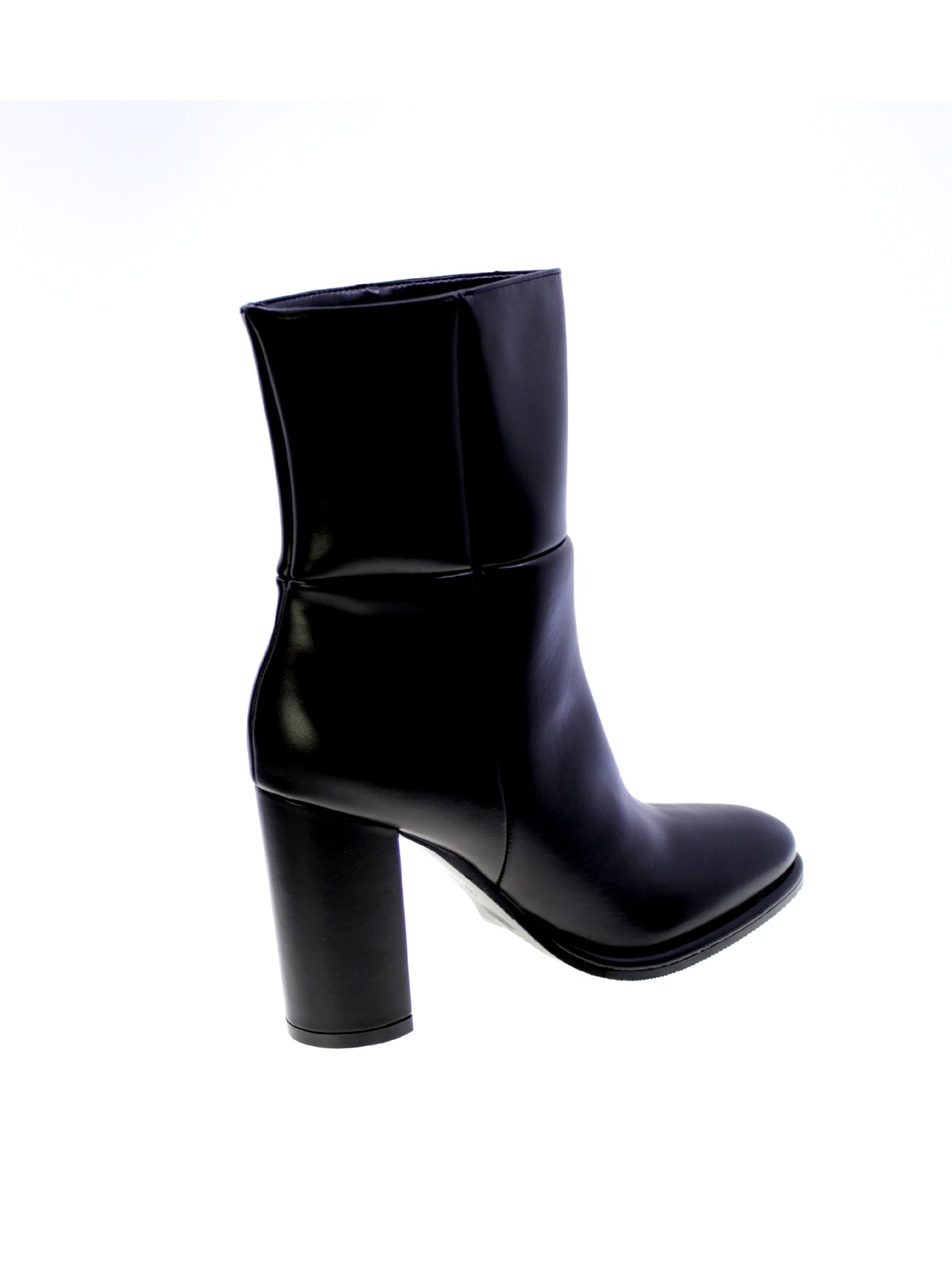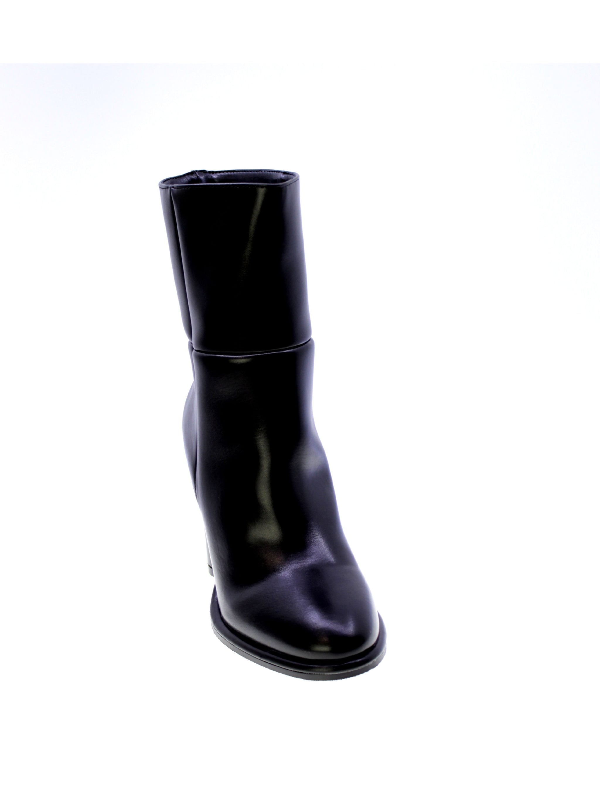 Tronchetto in morbida pelle colore nero gambale largo con tagli a rilievo, rivestimento interno in tessuto microforato, sottopiede morbido in pelle, tacco comodo rivestito 90mm, suola sintetico gomma antiscivolo, bordo over.