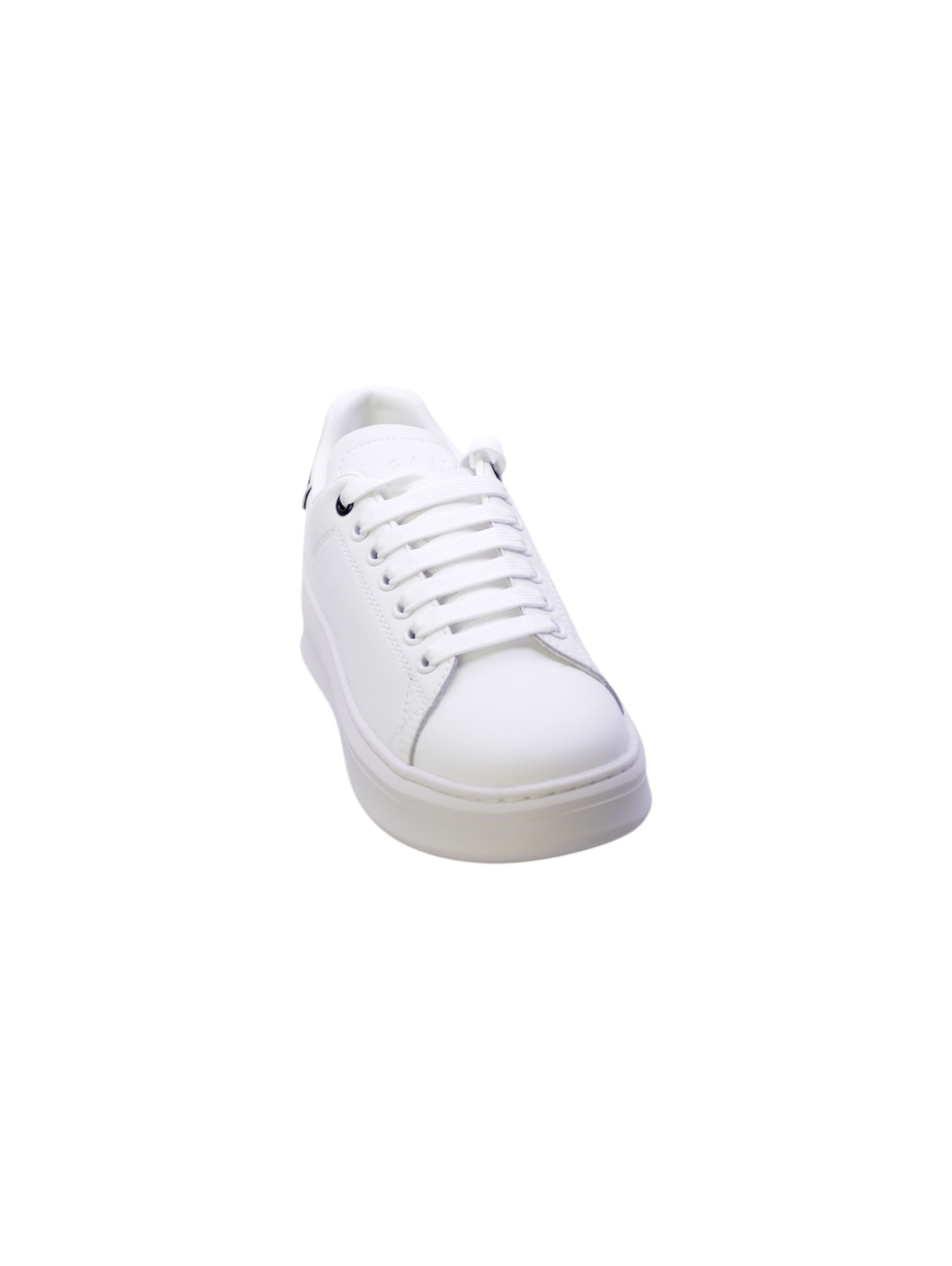 Sneakers in pelle bianca, design minimal con patch sul tallone in contrasto nero. Lacci piatti e sostituibili logati, suola in gomma alta 30mm offrono comfort e stile. Ideali per un look casual e versatile, queste sneakers combinano eleganza e funzionalità. La fodera interna assicura traspirabilità e una calzata confortevole per tutto il giorno. Perfette per chi cerca un tocco di raffinatezza in una scarpa sportiva. Scopri il connubio ideale di moda e comfort.