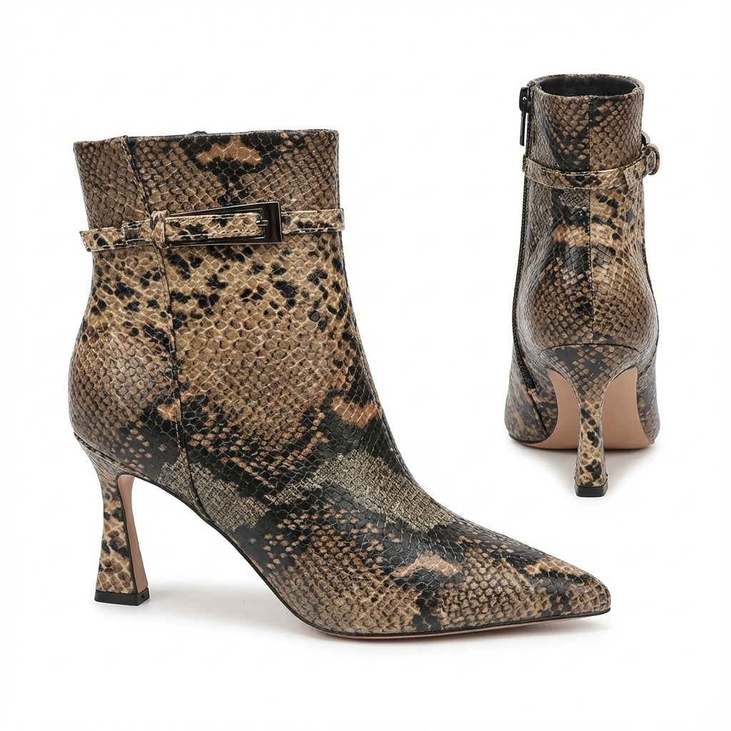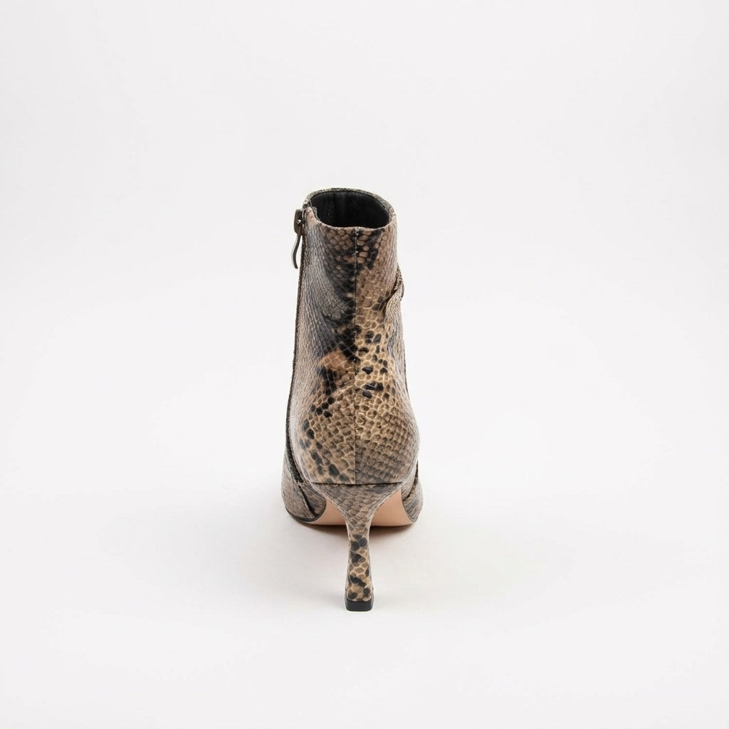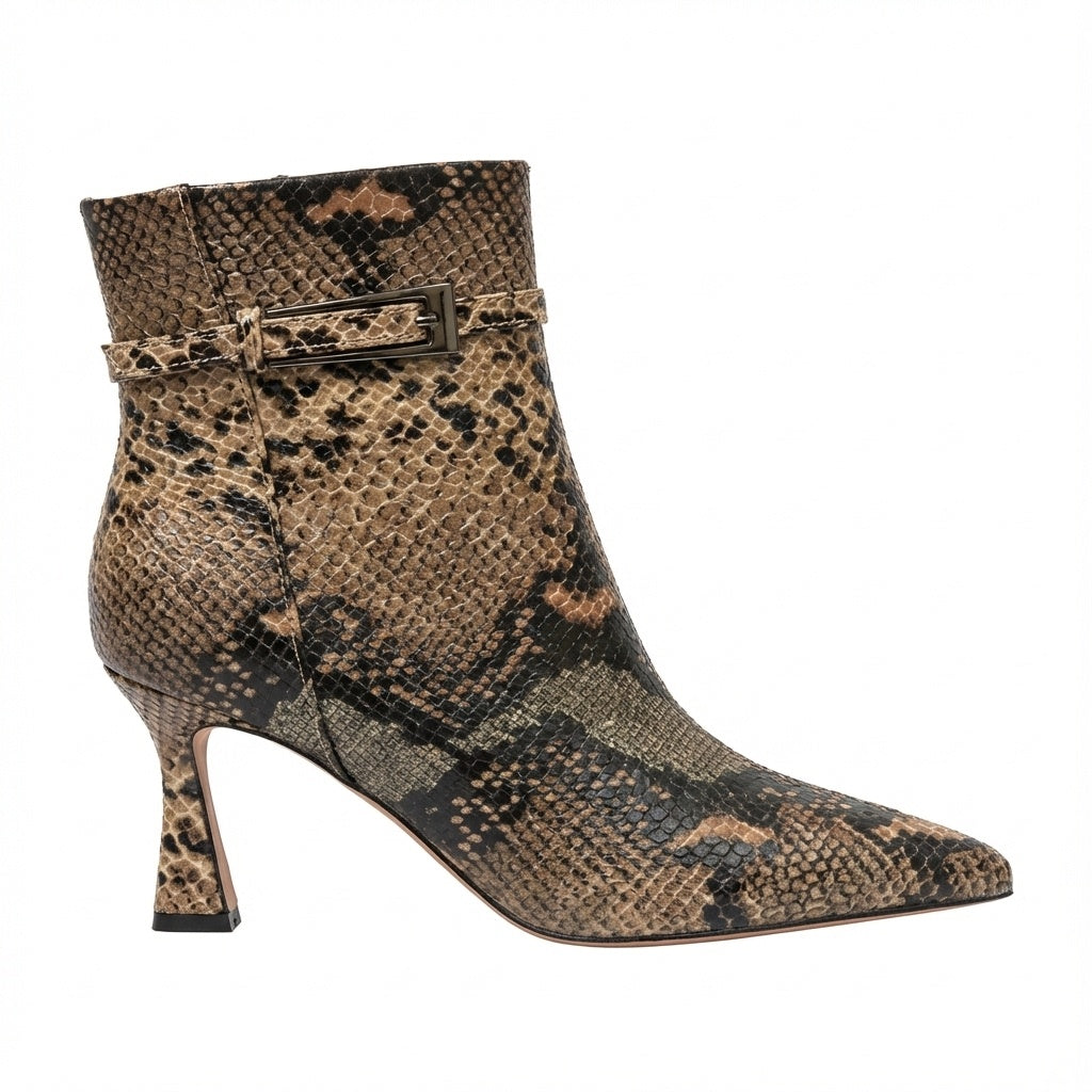Tronchetto in stampa pitonata, perfetto per chi desidera uno stile audace e sofisticato. Il tacco a rocchetto di 80mm garantisce elevata stabilità e comfort, mentre la fibbia decorativa aggiunge un tocco di eleganza. L'interno foderato assicura calore e comfort per tutto il giorno. Un must-have per arricchire il tuo guardaroba con un'accessorio unico e stiloso. Scegli l'eleganza e il comfort.