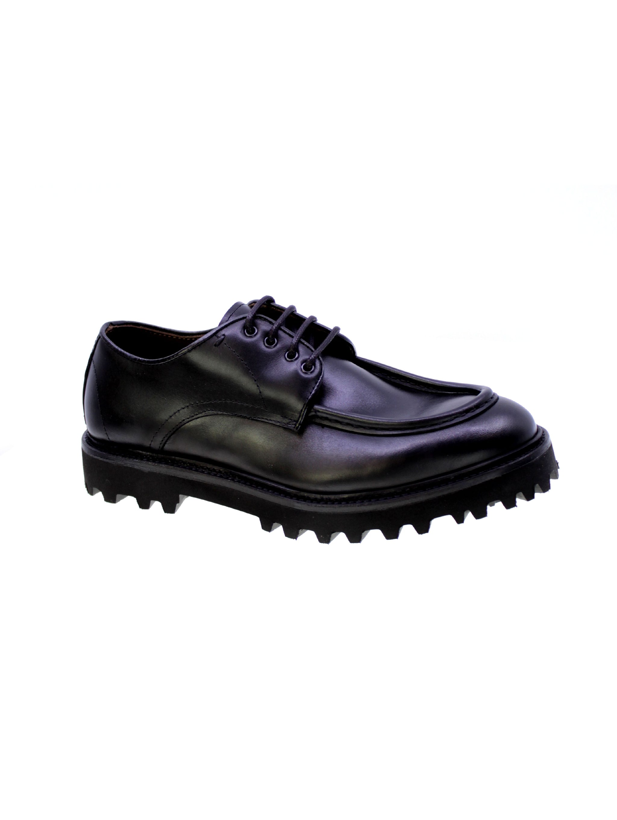 4 occhielli con lacci cerati in tinta, impuntura su tomaia in rilievo, rivestimento interno in pelle,