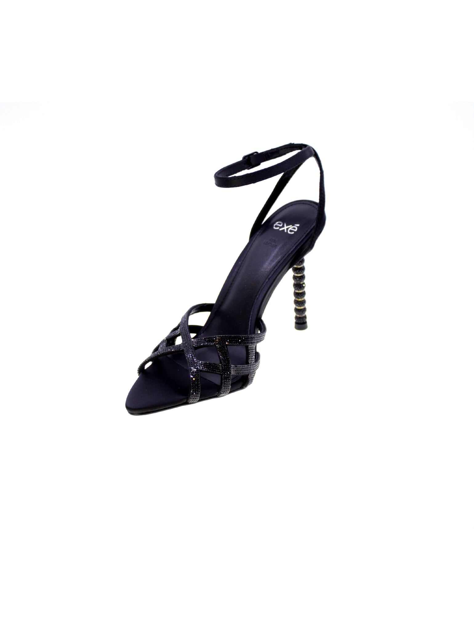 Exe Sandalo Mignon Raso Tacco 100 Strass Donna Nero Joy/959