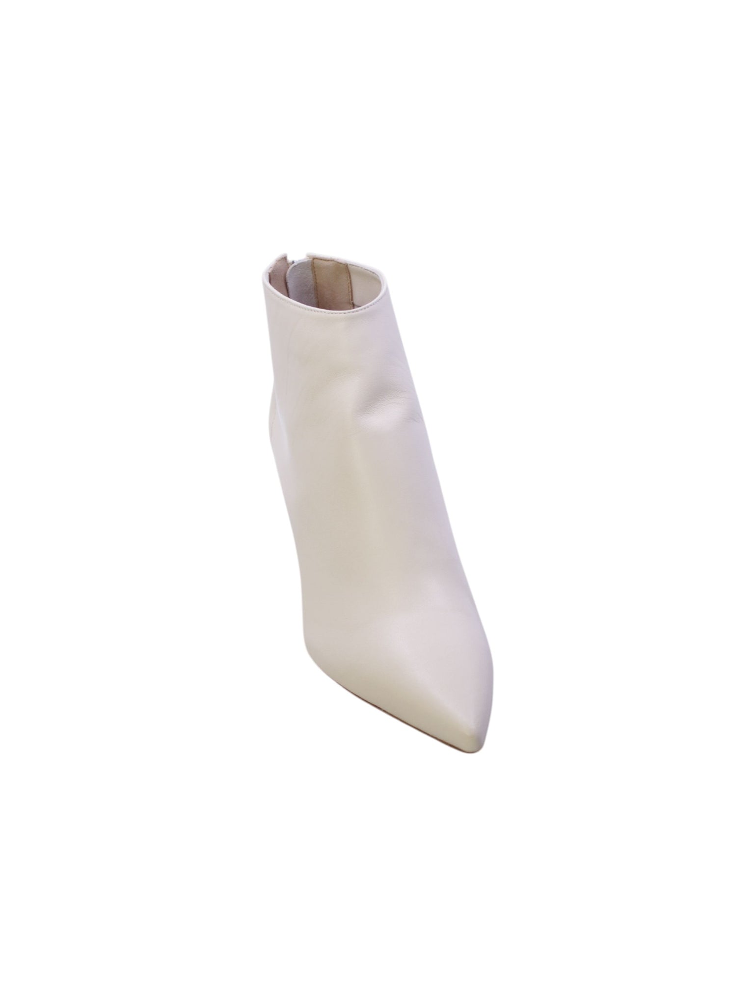 Scopri l'eleganza del tronchetto Elise di Joy Wendel. Realizzato in morbida pelle color off white, presenta una silhouette raffinata con un tacco a spillo di 75mm per un tocco di femminilità e grazia. La punta affusolata aggiunge un accento sofisticato, perfetto per serate eleganti o incontri formali. La zip sul tallone garantisce una calzata comoda e pratica. Eleva il tuo stile con un accessorio versatile e chic. Lasciati conquistare dal design senza tempo e acquista subito questo must-have.