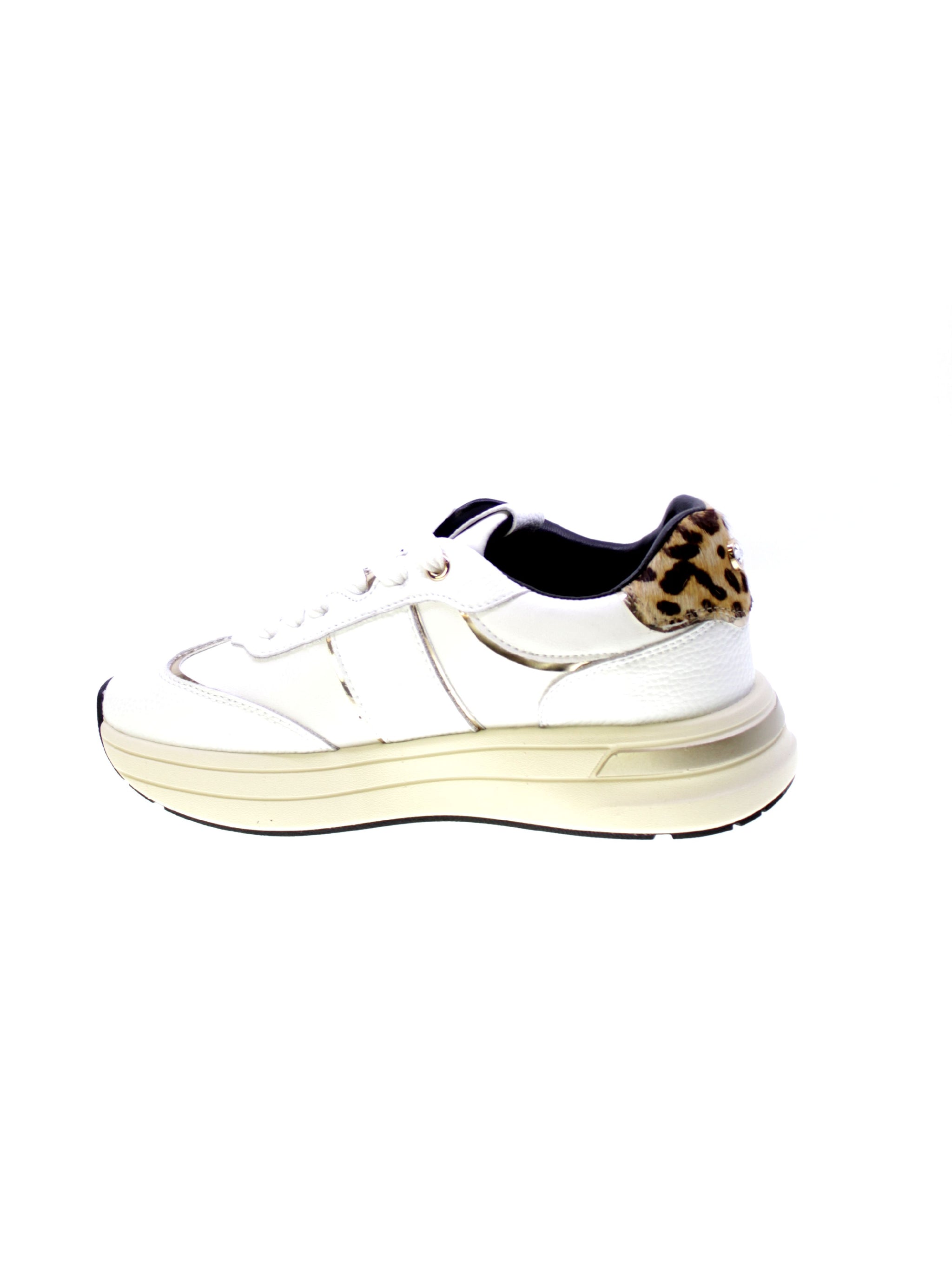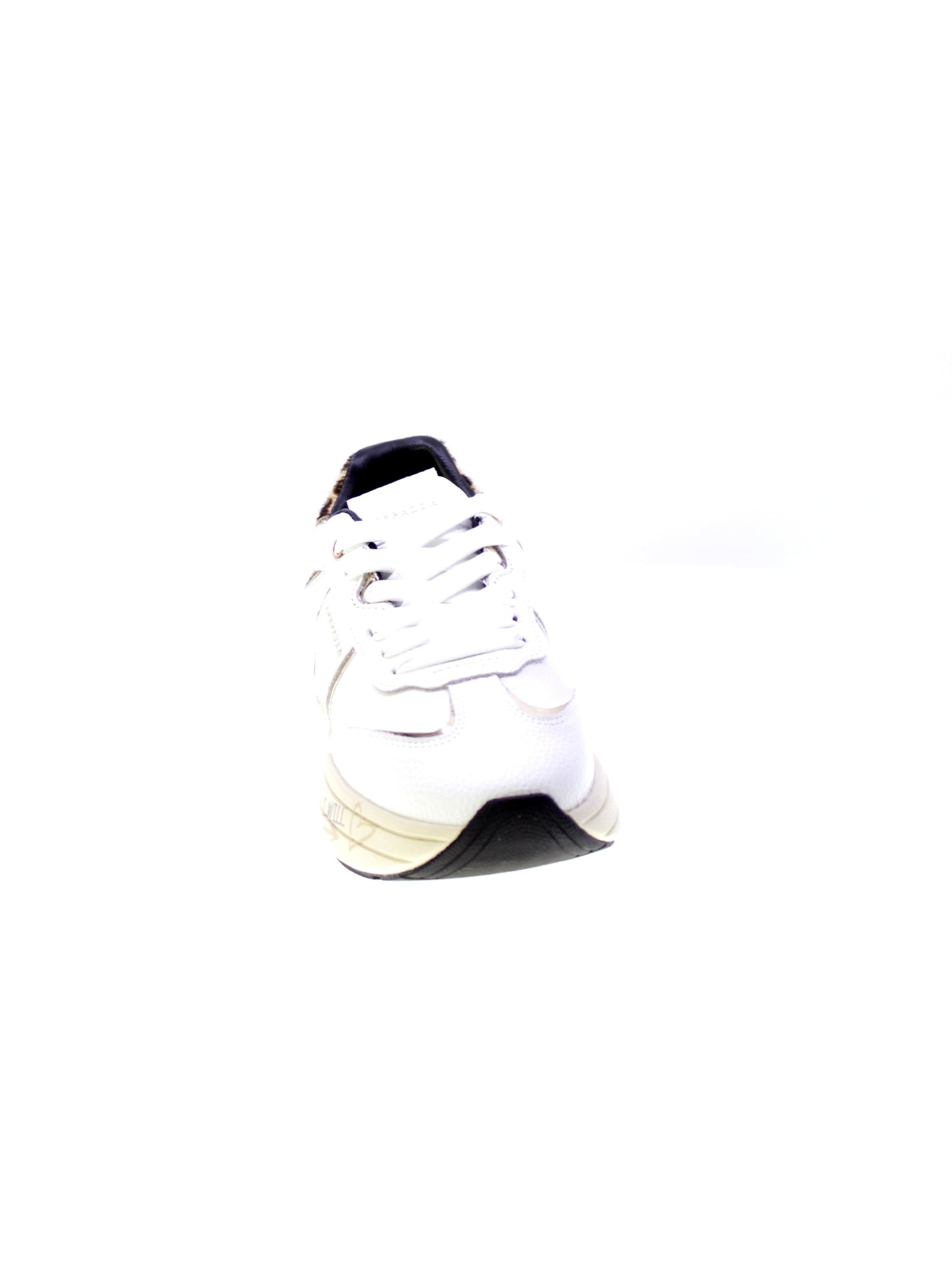 profilo dorato, 5+1 occhielli con lacci in tinta, toppino in cavallino maculato e strass